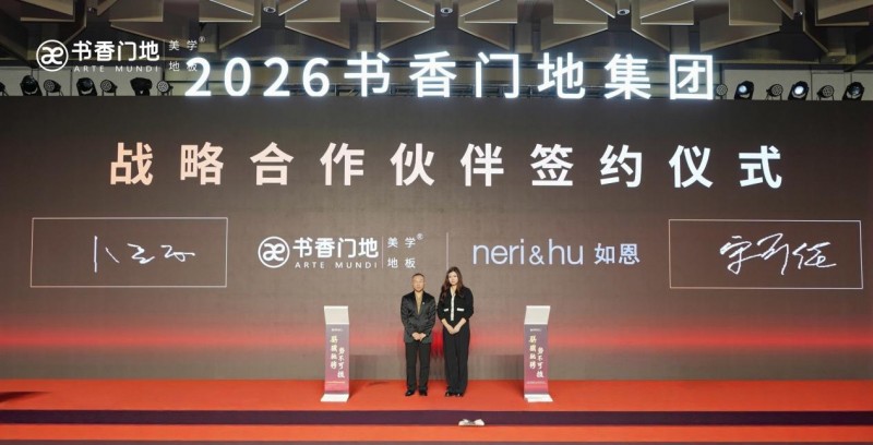 书香门地集团副董事长兼执行总裁卜立江与如恩设计代表宋可佳完成签约。如恩设计作为享誉全球的顶尖设计事务所,斩获多项国际顶级设计大奖,其独特的东方美学视角与国际设计语言,以东方美学与国际化设计理念的融合著称,此次合作将助力书香门地进一步提升产品设计质感,挖掘东方家居文化的深层价值,打造更具国际竞争力的美学地板产品,引领行业设计潮流。