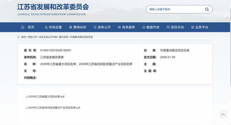1月9日,江苏省发展改革委官网正式发布2026年江苏省重大项目清单和省民间投资重点产业项目清单,以扎实的项目布局与可观的投资增量,释放出稳预期、强信心的鲜明信号。据悉,今年江苏拟安排43个化工和新材料重大项目。纵观江苏2026年重大项目清单,呈现出产业项目显著增加、投资规模稳健增长、创新投资快速跃升、软硬投资深度融合,在建储备接续有力等鲜明特征。