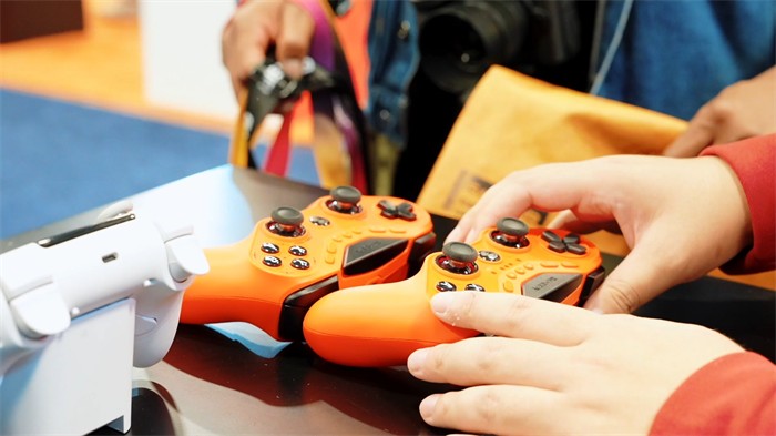 深度生态合作与游戏文化联动:作为微软全球合作伙伴,盖世小鸡全面展示了其丰富的微软Xbox授权手柄产品线。同时,与热门游戏《明末:渊虚之羽》、《绝区零》等推出的联名款产品,深度融合游戏文化元素,成为现场潮流热点。