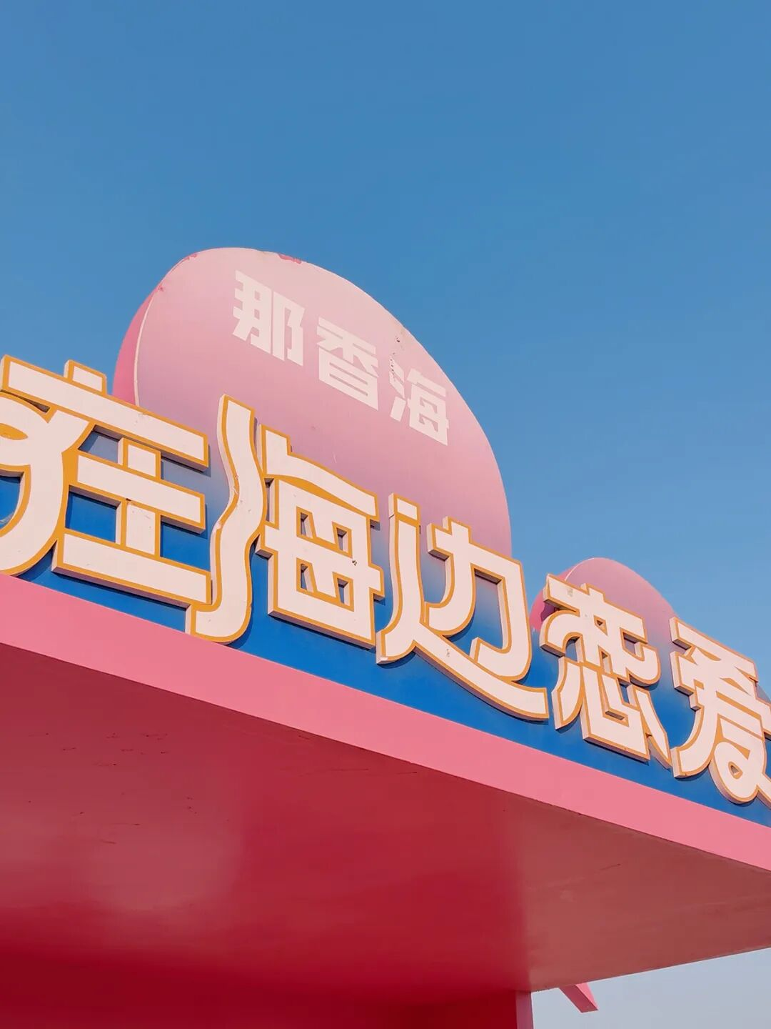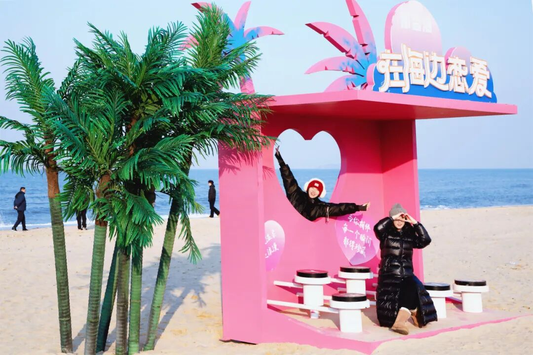 而海边的打卡建筑的亮粉色与冬日明媚的海,形成鲜明的对比,咸湿的空气中也弥漫着恋爱的粉色泡泡。