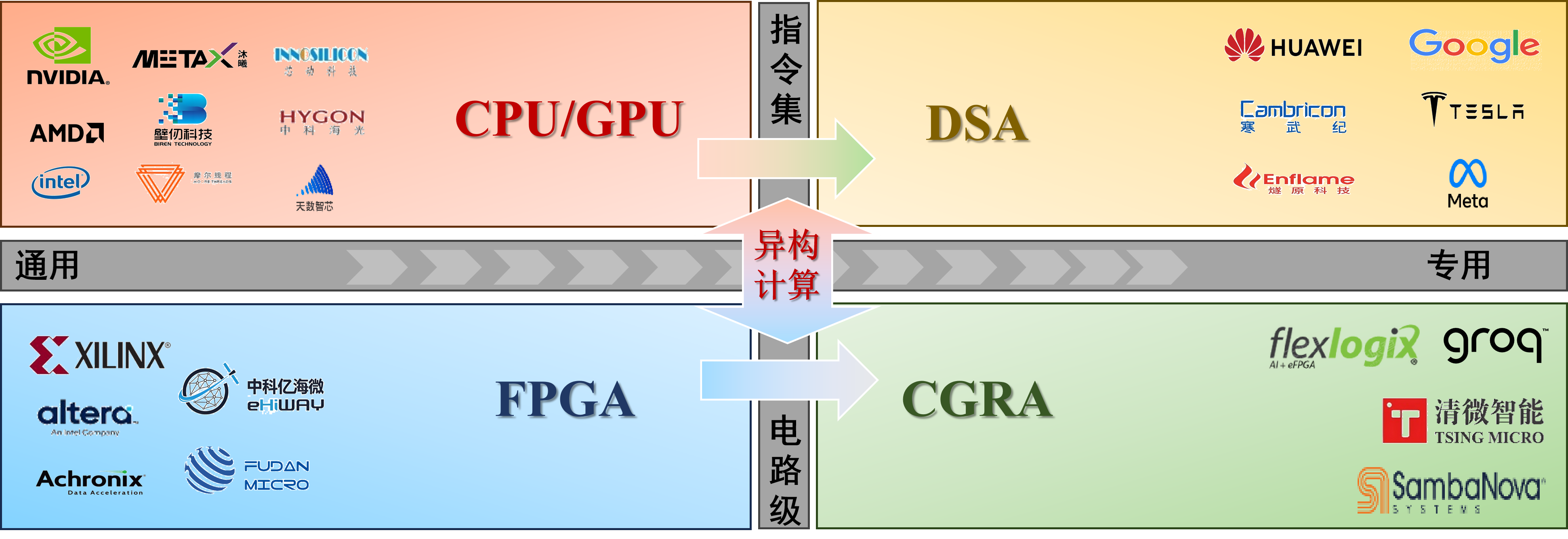 二、电路级层面:从细粒度可重构走向粗粒度可重构(FPGA→CGRA)并协同发展