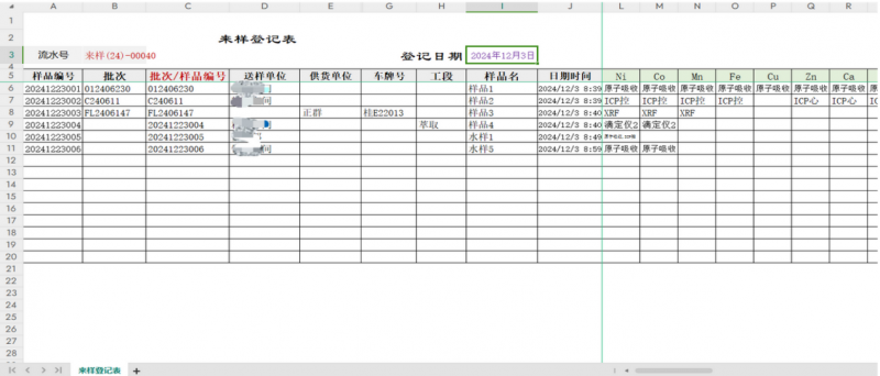 首先,在检测工作开始阶段,通过《来样登记》表对所有待检样品进行统一登记,实现样品信息的集中管理,为后续数据关联和统计打下基础。