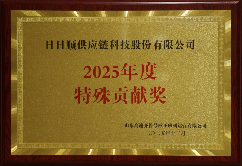 1月12日,日日顺供应链凭借其在跨国铁路物流中的稳定贡献与高效服务能力,荣获了山东高速欧亚班列颁发的“2025年度特殊贡献奖”。