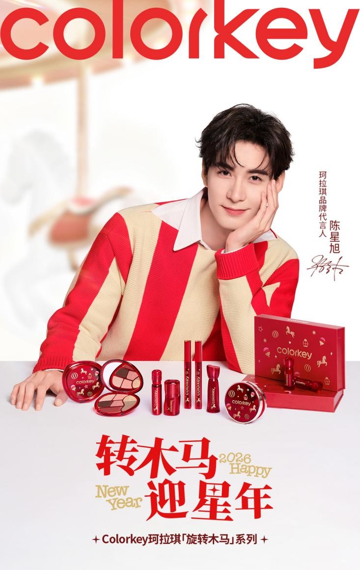 Colorkey珂拉琪品牌代言人陈星旭于1月16日登上品牌直播间,介绍了最新推出的2026马年限定「旋转木马」系列彩妆:人生就像一场盛大的旋转木马骑乘之旅,每一圈终点的抵达,都是下一程华章的序曲。木马周而复始地旋转,却始终向前。新春年复一年地更迭,仍常过常新。陈星旭在直播间还分享了他对节日妆造“明媚千金妆”和“元气鬼马妆”的建议、演绎了新剧经典对白、和粉丝“广式”互动,品牌直播间录得最高在线观看人数达10万+。
