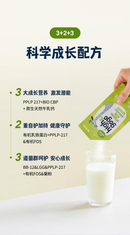 面对消费者对“科学喂养”的迫切需求,High&GoGo以儿童成长发育机理为蓝本,创新性研发出“3+2+3科学配方”,实现了从单一营养补充到多维度系统支持的跨越。该配方精准针对3-14岁成长期儿童的核心需求:以3大助长精华(PPLP-217益生菌+BIO CBP+天然原生牛乳钙)聚焦骨骼健康;以2重免疫守护(有机乳铁蛋白+ PPLP-217益生菌&有机FOS)构筑防御屏障;再以3道肠道屏障(三大益生菌 BB-12&LGG&PPLP-217+有机 FOS&菊粉)夯实吸收基础。通过科学配比实现协同增效,实现促进儿童骨骼发育、免疫自护力与消化吸收力,提供全面均衡的成长原动力。
