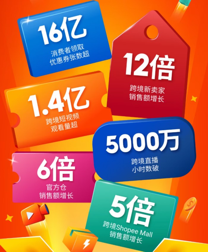 官方数据显示:12.12大促当天,跨境直播时长打破11.11记录超5000万小时;跨境短视频观看量突破1.4亿,跨境Shopee Mall销售额增长5倍;新卖家更借势大促流量红利实现快速突围,整体销售额激增12倍。