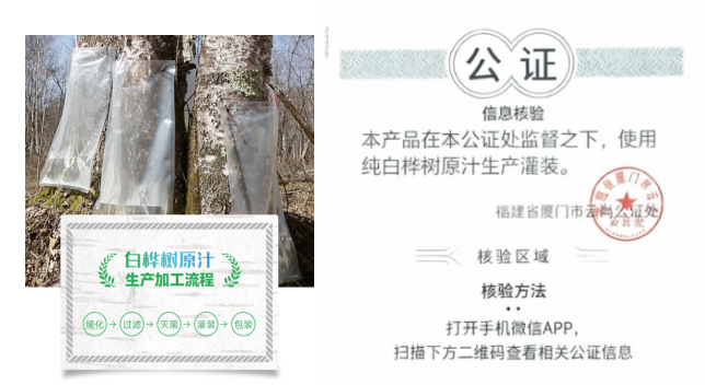 作为行业品质革新的引领者,林源春构建了 “全链条溯源 + 第三方公证” 的双重保障体系。依托长白山北纬 42° 黄金生态带的优质白桦林资源,企业严格恪守春季限定采集期,采用无菌采集与冷链储运技术,从源头锁住天然营养。全链条溯源系统覆盖采集、加工、灌装全流程,消费者可通过溯源码追溯产品全生命周期;更首创第三方公证确真体系,每瓶产品均附有专属公证码,扫码即可查看公证处全程监督记录,见证 “纯白桦树原汁生产灌装” 的全过程,以权威公证破解行业真伪鉴别难题。