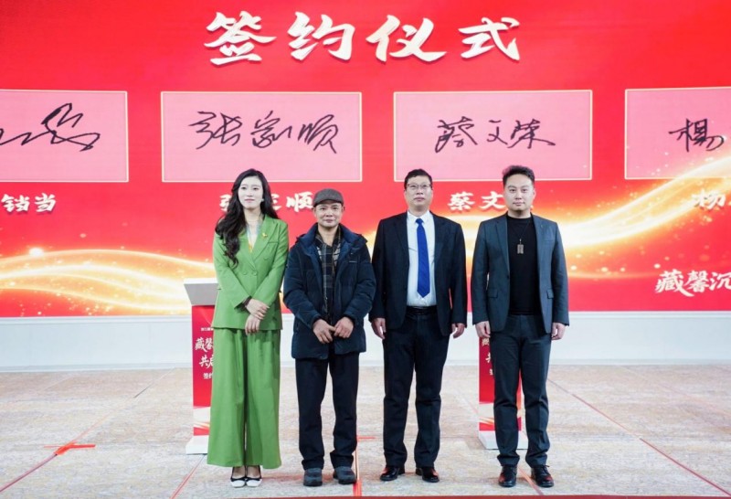 藏馨科技集团与非遗蜀香养生传承人梁飘逸、非遗木雕传承人张家顺签订协议,共同推动传统香道、木雕技艺的产品化、品牌化与市场化,让非遗技艺从“被保护”迈向“被应用、被传播”。