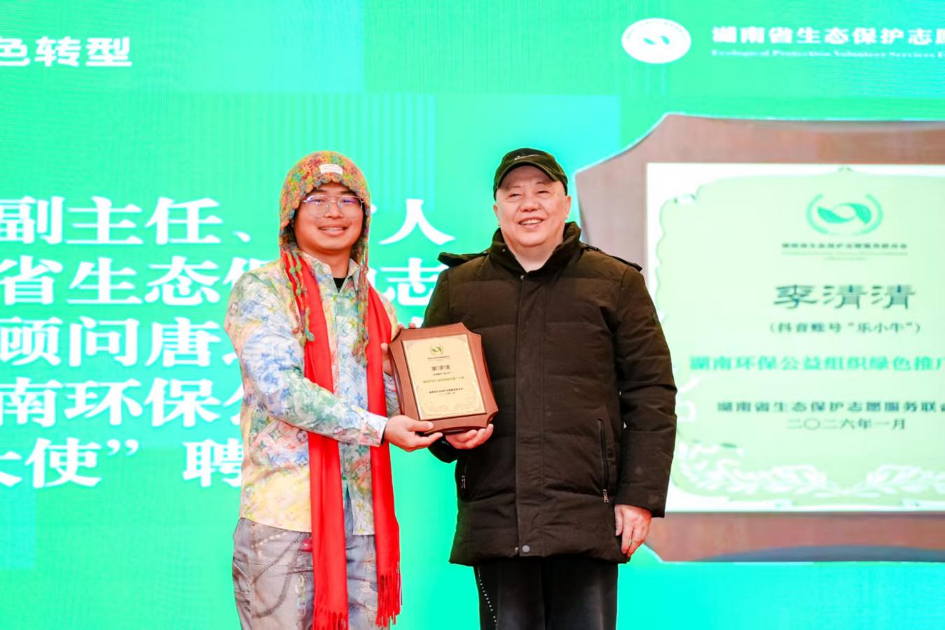 1月24日,以“助力经济社会发展全面绿色转型”为主题的第六届湖南绿色发展公益年会在长沙举行。年会向社会发出“争当绿色理念的传播者、绿色发展的助推者、环境治理的监督者、公众参与的动员者、自身建设的示范者”的倡议,号召全省环保社会组织共同投身绿色转型实践。湖南知名文旅博主“乐小牛”受邀担任全省环保类社会组织绿色推广大使,并与来自14个市州环保社会组织及高校环保社团代表共同发出了环保社会组织建功美丽湖南建设倡议。