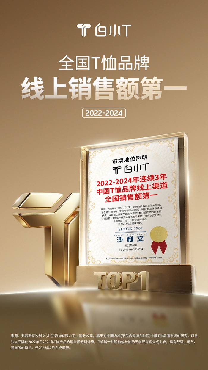 自创立以来,白小T持续深耕T恤品类,聚焦服装科技创新应用,重新定义“好T恤”的标准。2025年秋冬,白小T重磅推出的“热力系列”融入了多项科技,旨在进一步提升用户穿着体验,不断探索与拓宽T恤品类边界。基于持续的产品创新与市场认可,白小T已获得全球知名增长咨询公司弗若斯特沙利文(Frost & Sullivan)认证——连续三年(2022-2024)蝉联中国T恤品牌线上渠道销售额第一,品牌实力再获权威背书。