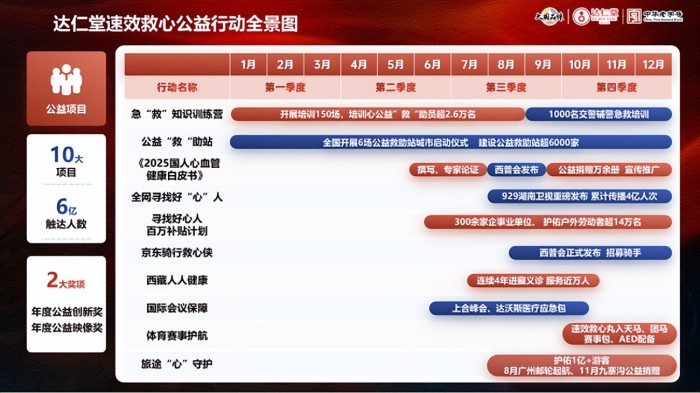 深耕基础,培育核心力量:联合中国红十字会等权威机构,为超2.6万名药店店员、一线交警提供专业急救技能认证,打造了遍布社区的“第一响应人”网络。