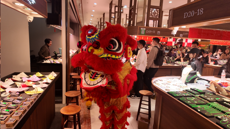 当刘关张的三国醒狮,不再是只在高桩上腾挪的表演者,而是化身成可亲近的“中国式圣诞老人”,走进平洲玉器街商铺拜年,走上街头派福——这是舞台艺术的出走,更是一场关于非遗如何“活在当下”的生动实践。