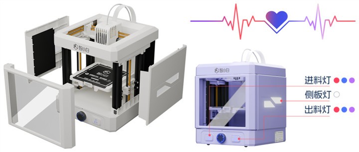安全是绝对红线。 智小白采用全封闭式机身与圆润的钝角设计,物理隔绝所有内部高温与运动部件,从根本上杜绝了学生好奇探索中的意外风险。其核心耗材严选环保可降解PLA,源自玉米等植物,打印过程中安全无毒、低气味,确保教室空气环境清新健康。