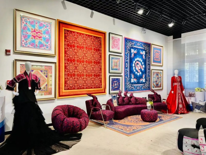 依文的乡村振兴之路,始于对民族手工艺的发掘与活化。董事长夏华在贵州山区调研时,发现了民间传统纹样的美学价值,随即开启了传统技艺与现代设计的融合探索。在贵州织金县,依文针对当地精细的蜡染技艺,搭建“带头人+合作社”模式,设立数字化产业基地,系统整合纹样元素、对接手工艺人。通过“深山集市”品牌,将蜡染文创产品推向全国景区、商圈及机场,让分散的绣娘实现家门口就业。截至目前,织金县32个乡镇组建合作社,2800余名绣娘接受培训,收入与生活水平显著提升,90后绣娘王秋雨更成为企业与绣娘间的沟通桥梁,助力技艺传承与市场转化。