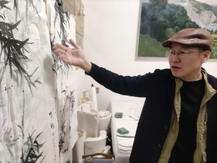 墙上那幅《墨竹图》里,新笋破土,枝干挺秀,既有铮铮骨力,又含潇潇逸气。这或许正是画家艺术人生的写照:深植于传统文化的厚土,枝叶则舒展于当代的晴空,始终保有一份如竹般向上、向善、向美的生命力。