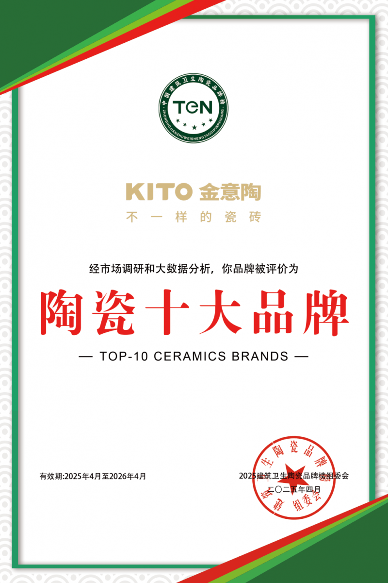 品质,是品牌立足的根基,更是金意陶赢得市场的核心密码。2025年,这份坚守赢得了市场的回声,荣膺多项品质权威认证。