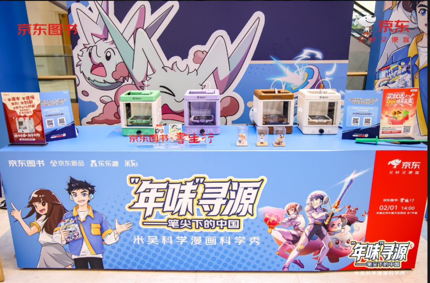 近日,京东图书成功举办“年味寻源——笔尖下的中国”《米吴科学漫画》线下科学互动签售会。活动现场,科学秀演示妙趣横生,互动实验引人入胜,孩子们在动手实践中感受科学魅力,体验探索乐趣。在这场科学与阅读交融的盛宴中,智小白3D打印机也惊艳亮相,以其独特的科技互动形式,与小朋友们近距离接触,生动展示科技与创意碰撞的无限可能,成为活动现场备受关注的焦点之一。