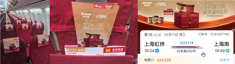 随后,这种陪伴感从商圈延伸到了春节最核心的“归乡路”上。康师傅也敏锐地捕捉到了购票与飞行的空隙,从12306购票页面的提醒,到万米高空机舱座椅背后的温情注脚,特别特鲜泡面出现在用户最需要心理慰藉的每一个节点。这种全路径的渗透,让“陪伴”不再是口号,而是变成了归途中触手可及的温度。