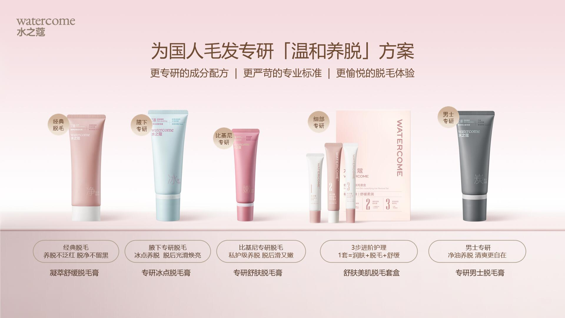 作为品牌王牌产品线,水之蔻脱毛膏系列始终以亚洲肌肤数据为研发根基。此次携手叶诗文,品牌再次迎来理念与产品的双重升级,提出「养护型专业脱毛」新主张,彻底超越传统脱毛“仅追求干净”的单一诉求,转向“养脱一体”的综合护理体验。并通过首创「专区专研,温和养脱」体系化方案: