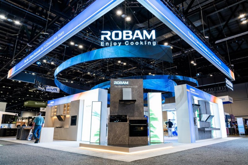 围绕不同区域的烹饪习惯与消费需求,老板电器推进针对性的深度本土化产品改造:针对北美开放式厨房油烟扩散快、噪音容忍度低的痛点,推出搭载AI智感恒吸系统的全新一代大吸力油烟机,兼顾强劲油烟性能与超低噪音表现;面向欧美家庭多灶同步烹饪的习惯,开发四眼甚至五眼燃气灶具,支持独立火力精准调控;为匹配西式烘焙对空间与温控的严苛标准,定制36英寸以上大容量嵌入式蒸烤一体机,实现精准控温与多层同烤。其中,亮相本届KBIS展的R-Max 3大吸力油烟机凭借硬核AI功能成为焦点——烟道压力骤增时,AI智感恒吸可自动感知压力变化并实时调节风量,保持吸力稳定;AI挥手智控支持隔空手势操作,实现开关与风量的便捷调控,让指尖不沾油腻;R-Link烟灶联动更实现点火即开、关火延时的无缝协同,全方位适配北美烹饪场景。