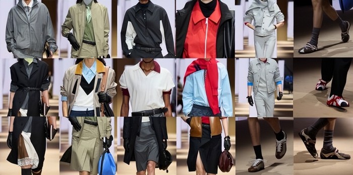大秀分为五大主题章节:「都会拱廊」「周末绿野」「城郊球场」「霓虹转角」与「灵感沙龙」。从工作日的办公室到周末的闲暇,从阳光下的红土球场到夜晚的城市律动,再到意式美学的永恒表达——都市的本质在于流动:人们穿行其间,彼此交织,赋予城市鲜活的生命力。
