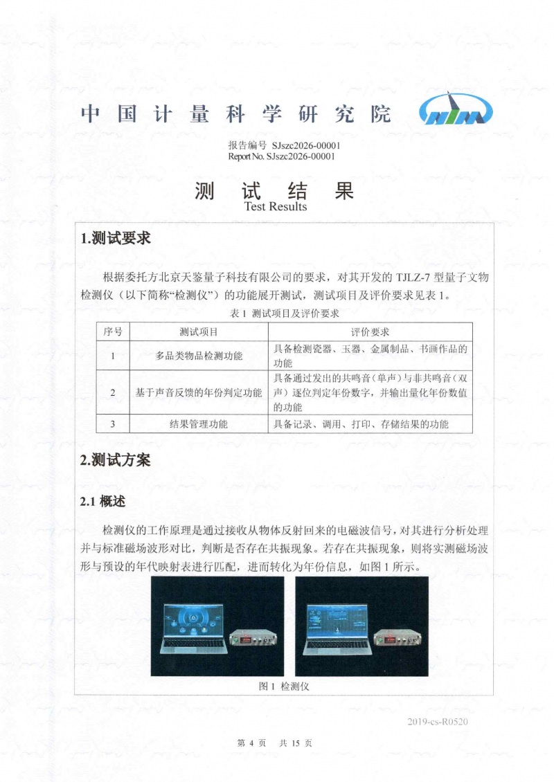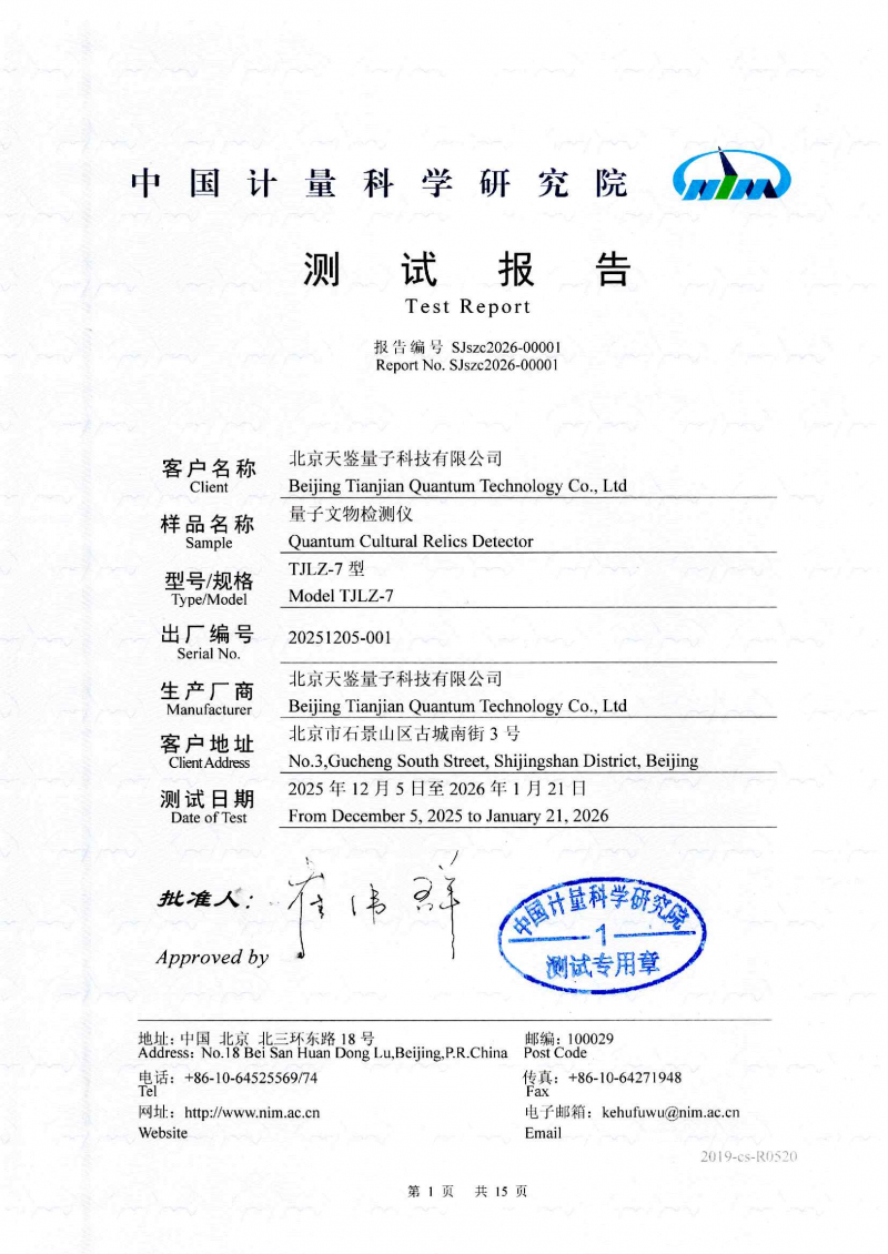 2026年1月,由北京天鉴量子科技有限公司自主研发的TJLZ-7型器物年份检测仪通过了国家级法定计量技术机构中国计量科学研究院的产品测试,标志着该技术应用得到了国家专业计量机构的认可,文物鉴定技术从“宏观比对”跨越到了“微观溯源”的新维度。