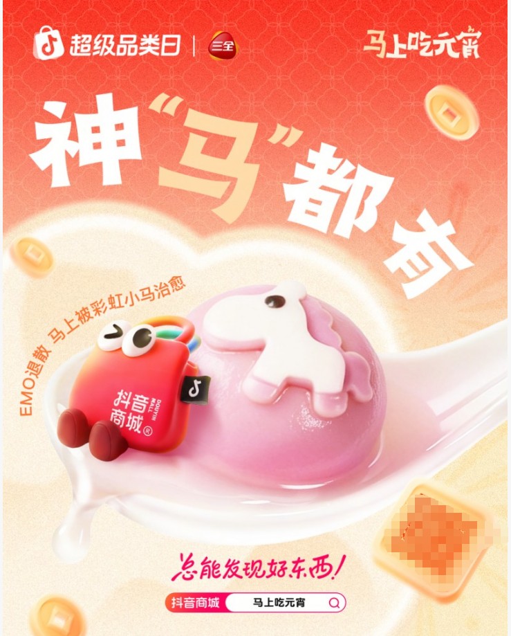图说:马年特色造型汤圆在抖音电商迎来热销