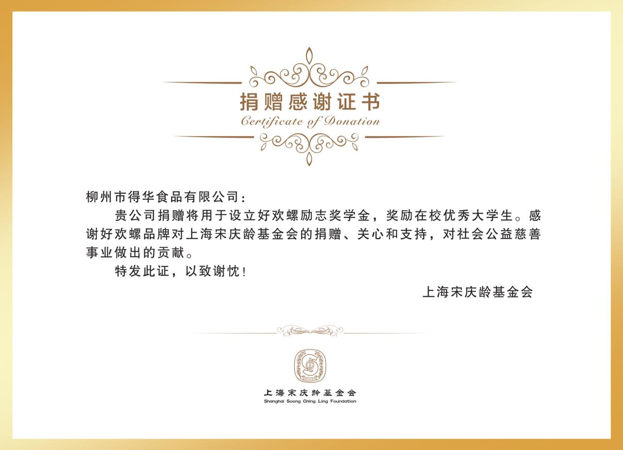 2024年3月,好欢螺与上海宋庆龄基金会正式达成长期合作,共同设立“好欢螺励志奖学金”,项目以助力励志大学生拓宽知识边界、放飞青春梦想、实现人生价值为核心宗旨,开启了品牌深耕教育公益的全新征程。