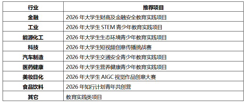对企业而言,支持大学生成长发展不仅是履行社会责任的体现,更是品牌年轻化、价值深度化的战略选择。“责任100丨CSR中国教育榜”组委会(简称“责任100”)联合知行计划,发起2026年“责任100丨重点行业企业ESG青年行动”,面向金融、科技、工业、能源化工、汽车制造、医药健康、美妆日化、食品饮料等8个重点行业企业,开展各类项目,助力行业企业深度触达百万青年大学生。