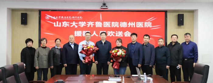 3月9日,山东大学齐鲁医院德州医院召开援疆人员欢送座谈会,为即将启程赴新疆执行援派任务的杜美娟、周恒送行。医院党委书记王振东,党委委员、副院长张旭斌,党委委员、副院长费剑春出席会议,相关科室负责人、往届援疆代表参加会议,会议由张旭斌主持。
