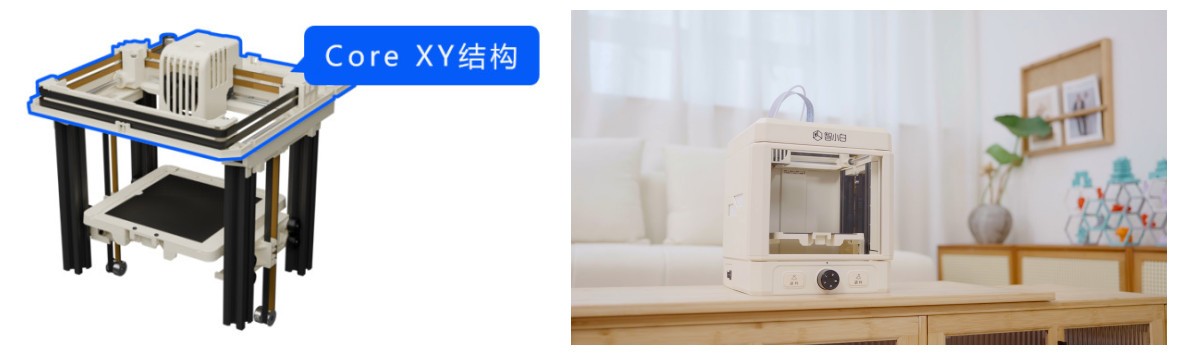 创新 Core XY 结构让机身比传统工业级打印机缩小 60%,可轻松嵌入书架、桌面、餐边柜,不占家庭空间;
