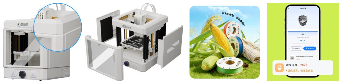 耗材采用玉米淀粉基 PLA + 植物原料环保耗材,打印无异味,孩子可直接接触,从材料源头守护孩子健康。