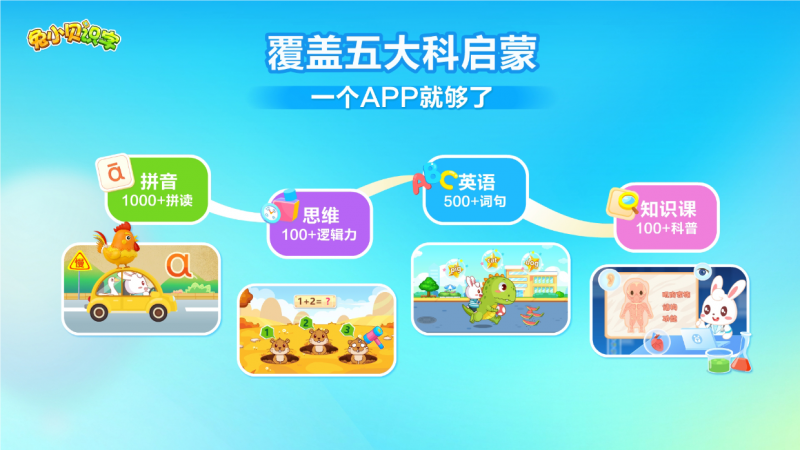 兔小贝识字凭借 “单 APP 覆盖五大学科” 的核心优势脱颖而出,成为3-8岁儿童家庭的启蒙优选。依托品牌13年早教动漫沉淀,这款工具打破学科壁垒,将识字、拼音、英语、思维、知识课融为一体,让孩子无需切换应用,即可享受系统化、一站式启蒙。多学科整合并非简单叠加,而是遵循儿童认知规律的科学设计。