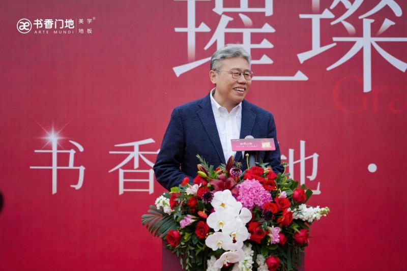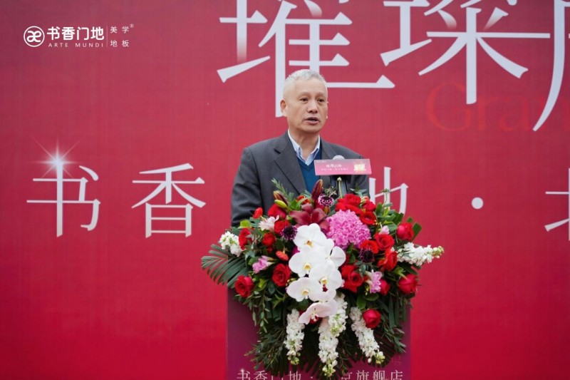 中国木材与木制品流通协会会长李佳峰代表协会对旗舰店开业致以热烈祝贺。他谈及北京的千年文脉底蕴与十里河家居建材特色街的行业标杆价值,称赞书香门地择址于此是品牌战略的重要落子,更是美学地板与首都文化的深度融合。他高度认可书香门地秉持 “美能增值” 理念以及在推动行业升级、履行社会责任等方面的卓越表现。他期待旗舰店以优质产品与独特美学理念赢得北京消费者的认可与喜爱,与行业同仁携手助力首都家居产业高质量发展。