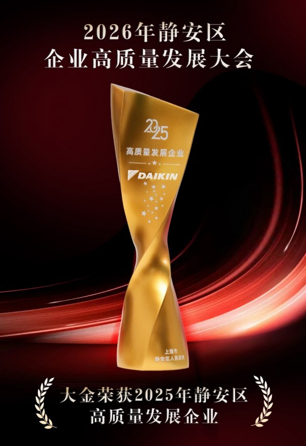 高质量发展,不是简单的规模扩张,而是发展动能的系统性升级。近日,2026年静安区企业高质量发展大会举行,会上指出,2025年静安坚持高质量发展,地区生产总值突破3500亿元大关,今年将以“十五五”开局为契机,把“国际静安、卓越城区”建设向纵深推进。凭借在技术创新、产业升级及经济贡献等方面的卓越表现,大金荣获“2025年度静安区高质量发展企业”。