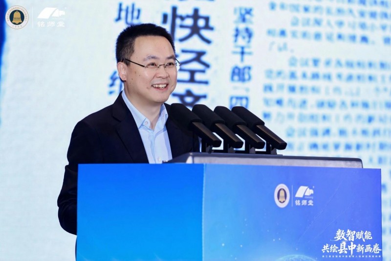杭州铭师堂创始人、董事长兼CEO赵华锋以《践行理想,助力振兴:AI时代铭师堂的县中赋能探索与实践》为题作主题分享。他表示,杭州铭师堂始终以“用互联网改变教育,让中国人都有好书读”为初心锚点,近二十年来深耕教育科技赛道,持续打磨数智技术与教育教学的融合路径。针对县域高中优质资源短缺、育人效能不足等痛点,企业以升学e网通为核心平台,将数智技术转化为可落地、可复用的育人工具,打造全场景数智育人解决方案,用实打实的技术与服务推动优质教育资源跨域流动,切实为县中振兴注入数智动能。
