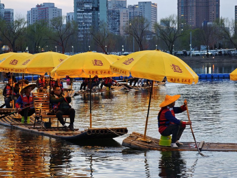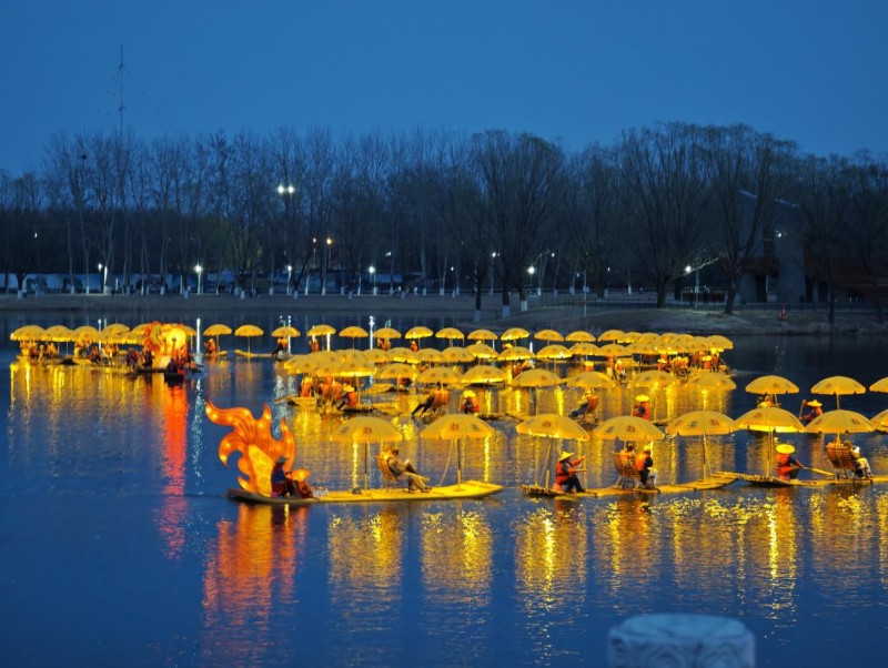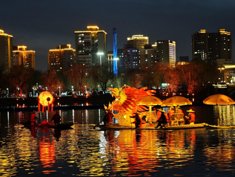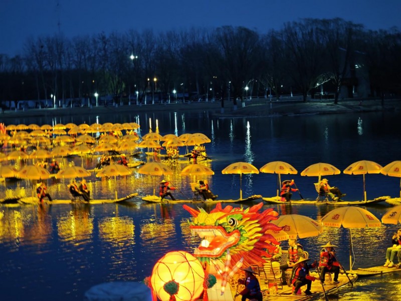 阳朔“金龙”在北京亮马河上巡游