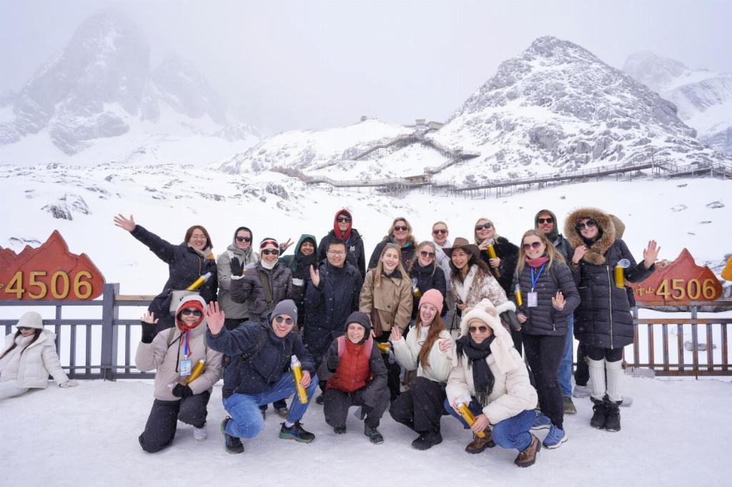 在滇考察期间,代表团先后走进石林、玉龙雪山等自然景观胜地,沉浸式体验彝族三弦舞、白族扎染、三道茶、唐卡绘画等非物质文化遗产项目,近距离感受云南得天独厚的生态资源与多姿多彩的民族文化底蕴。同时,代表团还实地调研昆明航空枢纽“易畅转”便捷服务体系,深入了解云南生态保护与民族社区共生的可持续旅游发展模式,全面掌握云南入境旅游接待能力、产品打造潜力及配套服务水平,为后续合作线路开发积累了一手素材。