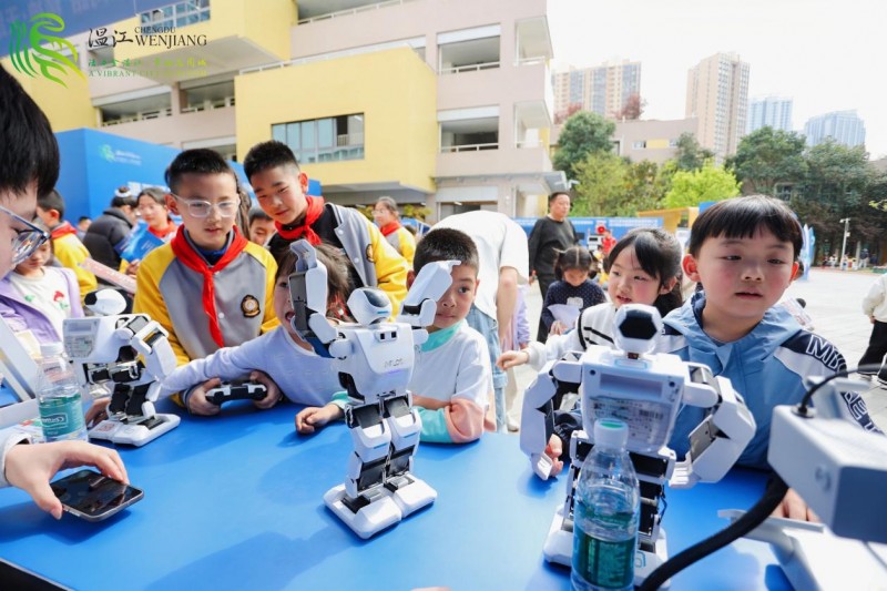 本次活动现场还设置了互动体验展区,来自区气象局、公平街道、成都农职院、鱼凫生态科普基地、三足乌低空科技、锦弘中医药、智趣空天等10余家的智能机器人、动植物标本、航空模型无人机足球等展品和科普体验设施设备,吸引了现场嘉宾与师生踊跃参与,展区人气高涨、互动热烈。