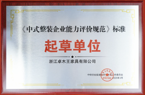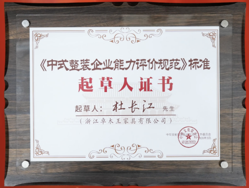 卓木王作为红木整装领域的开拓者与领军者,凭借多年积累的丰富实践经验,为《中式整装企业能力评价规范》的制定提供了专业支持。在大会上,卓木王被授予《中式整装企业能力评价规范》标准起草单位,杜长江被授予《中式整装企业能力评价规范》起草人。