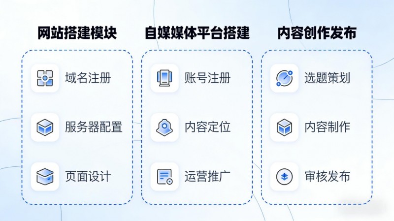 为企业提供从平台搭建包含官方网站建设、自媒体建设等到内容创作文案撰写再到信息发布等全方位服务,帮助企业打造完善的AI+营销体系,提升品牌影响力和市场竞争力。