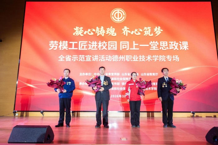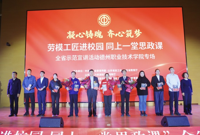 3月31日下午,“凝心铸魂 齐心筑梦——劳模工匠进校园 同上一堂思政课”山东省示范宣讲活动在德州职业技术学院举行。近400名师生齐聚一堂,共同聆听劳模故事,感悟劳动精神,汲取榜样力量。