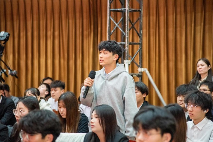 四位劳模工匠的故事感人至深、催人奋进,现场掌声不断。在交流互动环节,同学们踊跃提问,请教成长困惑、学习方法和职业规划,劳模工匠们耐心解答、悉心指导。