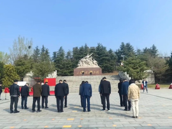 大家在祭奠广场英雄群雕前整齐列队,举行庄重的献花圈仪式。肃立默哀、三鞠躬,以最朴素的方式缅怀革命先烈,追忆他们舍生取义的崇高壮举。