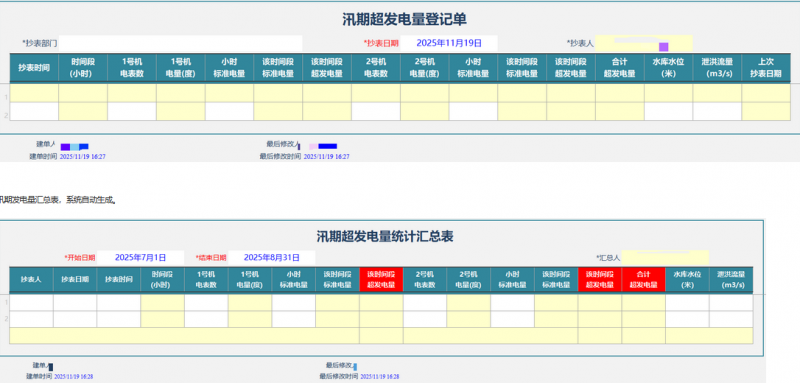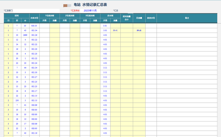 水情监测是水电站调度与防洪管理的核心环节。勤哲Excel服务器建立进水闸、泄洪闸及无闸泄洪数据关系表,实现水情数据统一登记与流量自动计算。系统可自动生成汇总报表,并提供趋势分析与历史比对,为防洪调度、发电计划和水资源管理提供科学决策依据。通过平台的数据集中管理与自动化处理,管理人员可实时掌握水情变化,确保调度决策快速、准确且高效。