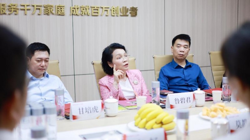 2025年4月15日,长沙市开福区工商联主席鲁碧君、书记甘培虎、副主席刘日欣、秘书长袁玉宝,女企业家商会会长史丹,湖南高铁时代董事长鲁丽,湖南亿客隆商贸公司董事长唐晓丹,湖南途艺国际旅行社董事长李霞一行走访细莫严选,与企业负责人莫静波及高管团队展开深入交流,通过座谈交流与实地参访的形式,了解企业十余载经营历程,倾听企业需求,共促区域发展新路径。