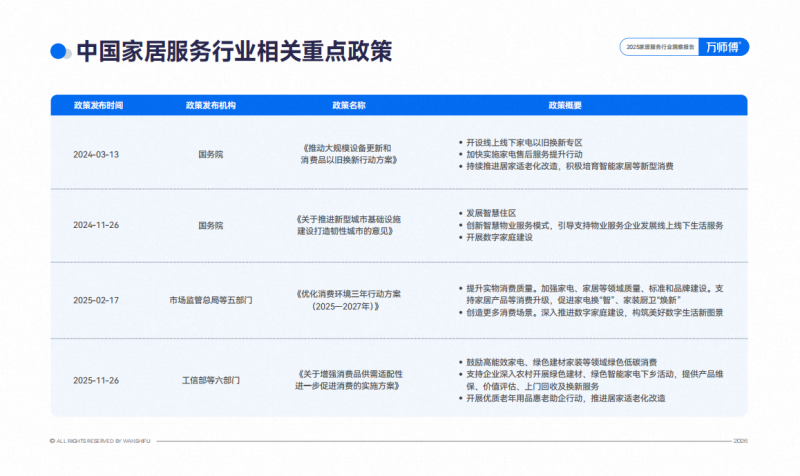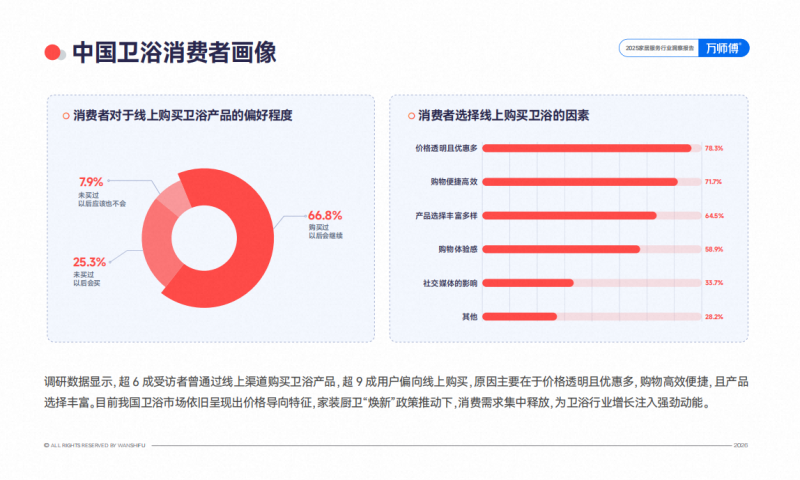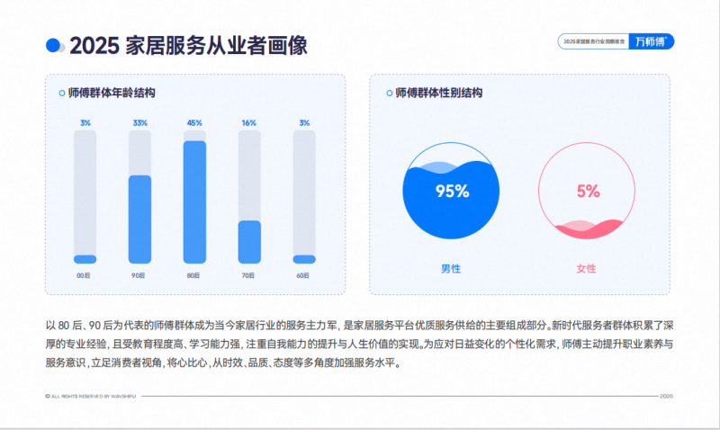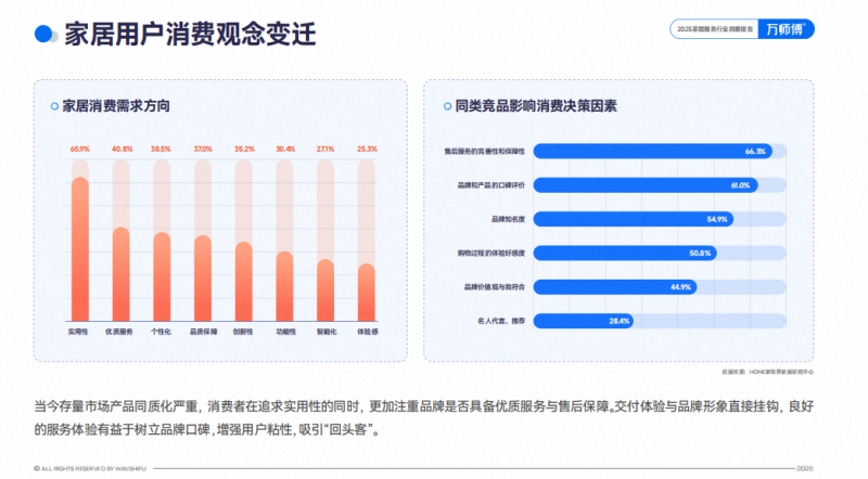 基于定期市场调研和独家数据分析,万师傅《2025家居服务行业洞察报告》深度剖析当前经济形势下中国家居服务行业消费特点、服务需求和产业环境,探索家居消费趋势,为企业寻找确定性增长提供参考。