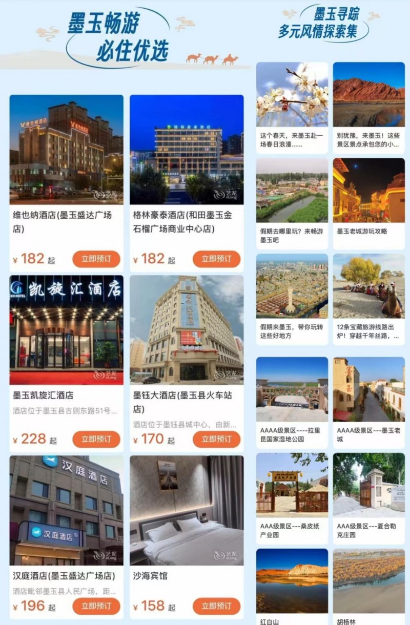 “京墨同心 南疆传韵 墨玉对口帮扶资讯&成果”记录北京与墨玉在文化保护、产业共建中的协作足迹。从特色体验集到一键预订的交通服务,这里是你开启南疆秘境的“数字起点”。