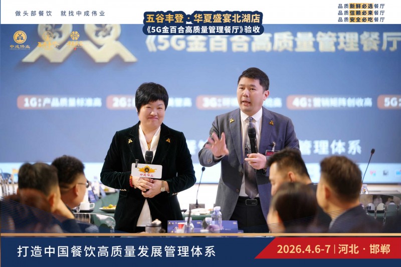 2026年4月6日,备受瞩目的五谷丰登·华夏盛宴北湖店《5G金百合高质量管理餐厅》验收大会盛大启幕。这不仅是一场对管理成果的检阅,更是五谷丰登品牌对“品质至上”理念的庄严承诺,是对消费者权益的深 情守护。