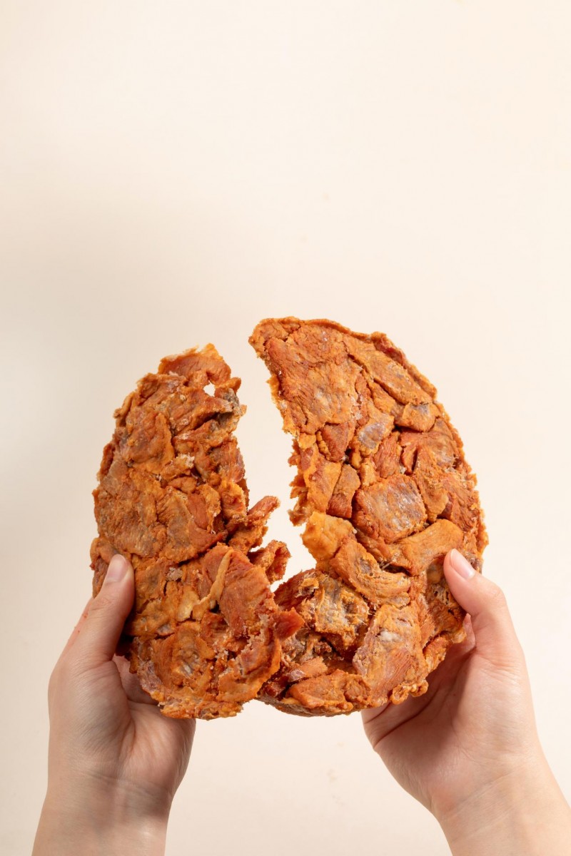 恪守传统工艺压制成型,嚼劲十足,慢慢咀嚼能充分品味猪肉原生醇香,饱腹感强,是地道青岛特色小吃。